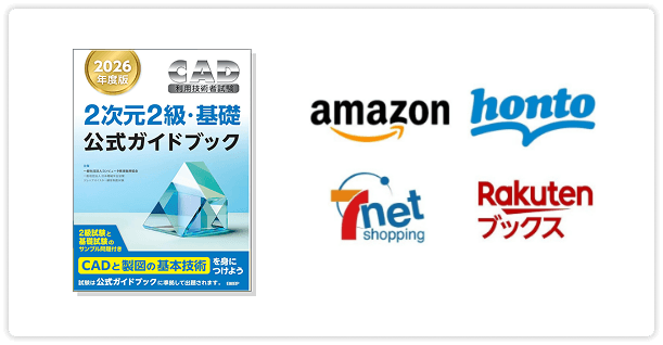 JWCADやAutoCADの学習がひととおり終わったら、いよいよ試験対策の学習に入ります。試験問題は書籍「2次元 2級・基礎 公式ガイドブック」の中から出題されますので、ガイドブックを用意しましょう。