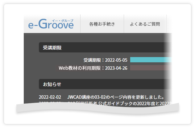 3DCADやJWCAD、AutoCADなどの学習教材や各種サービスは、すべて学習システムからご利用いただくことができます。