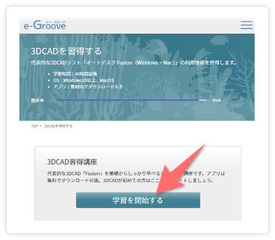 学習を進めると、操作方法を紹介した解説ムービーが多数登場します。練習用ファイルもダウンロードできるので、ムービーに合わせて実際に操作練習しながら、快適に学ぶことができます。